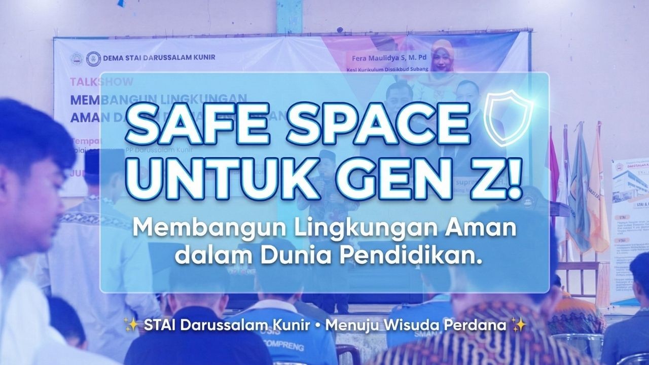 KUNIR, SUBANG — ruangargumen.com | Menjelang momen bersejarah Wisuda Perdana, Dewan Eksekutif Mahasiswa (DEMA) STAI Darussalam Kunir baru saja sukses bikin gerakan yang impactful banget! Bukan sekadar seremonial, mereka memilih menggelar talkshow akademik bertajuk “Membangun Lingkungan Aman dalam Dunia Pendidikan” pada Jumat (19/12) kemarin.